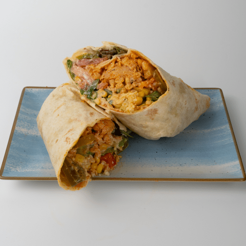 mit Basmatireis, Kalbsstreifen, Jalapenos, Zwiebeln, Paprika, Mais, Fried Onions und Hot-Sirachosauce
